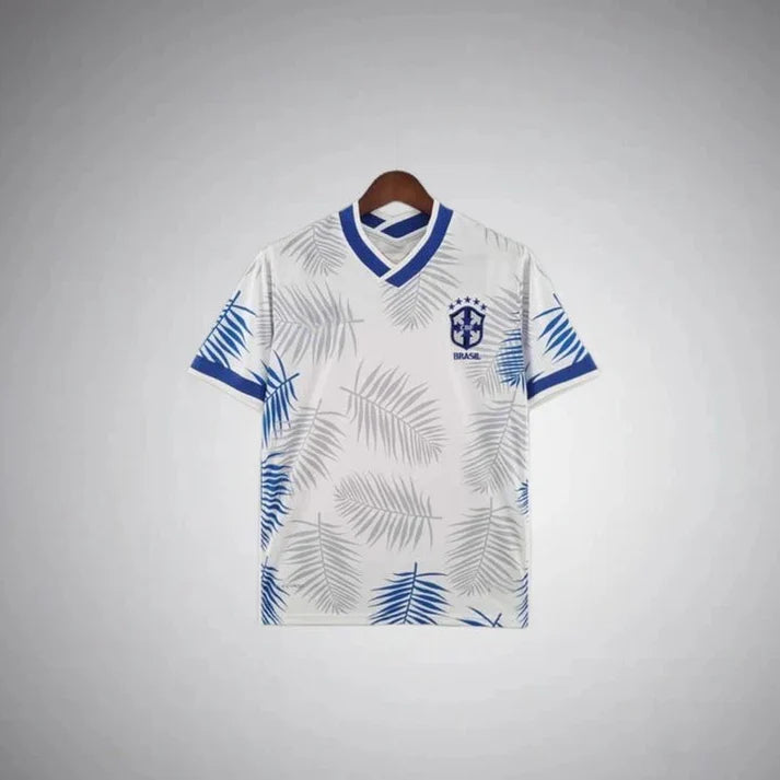 The Brazil "Bruma Folha" Jersey is a special edition football shirt inspired by Brazil's rich natural landscapes. The term "Bruma Folha" translates to "Mist Leaf" in Portuguese, suggesting a design that incorporates elements reminiscent of misty forests or foliage. This jersey is crafted from a blend of polyester, cotton, and spandex, offering features such as quick-dry, windbreak, anti-static, and breathable properties for enhanced comfort.